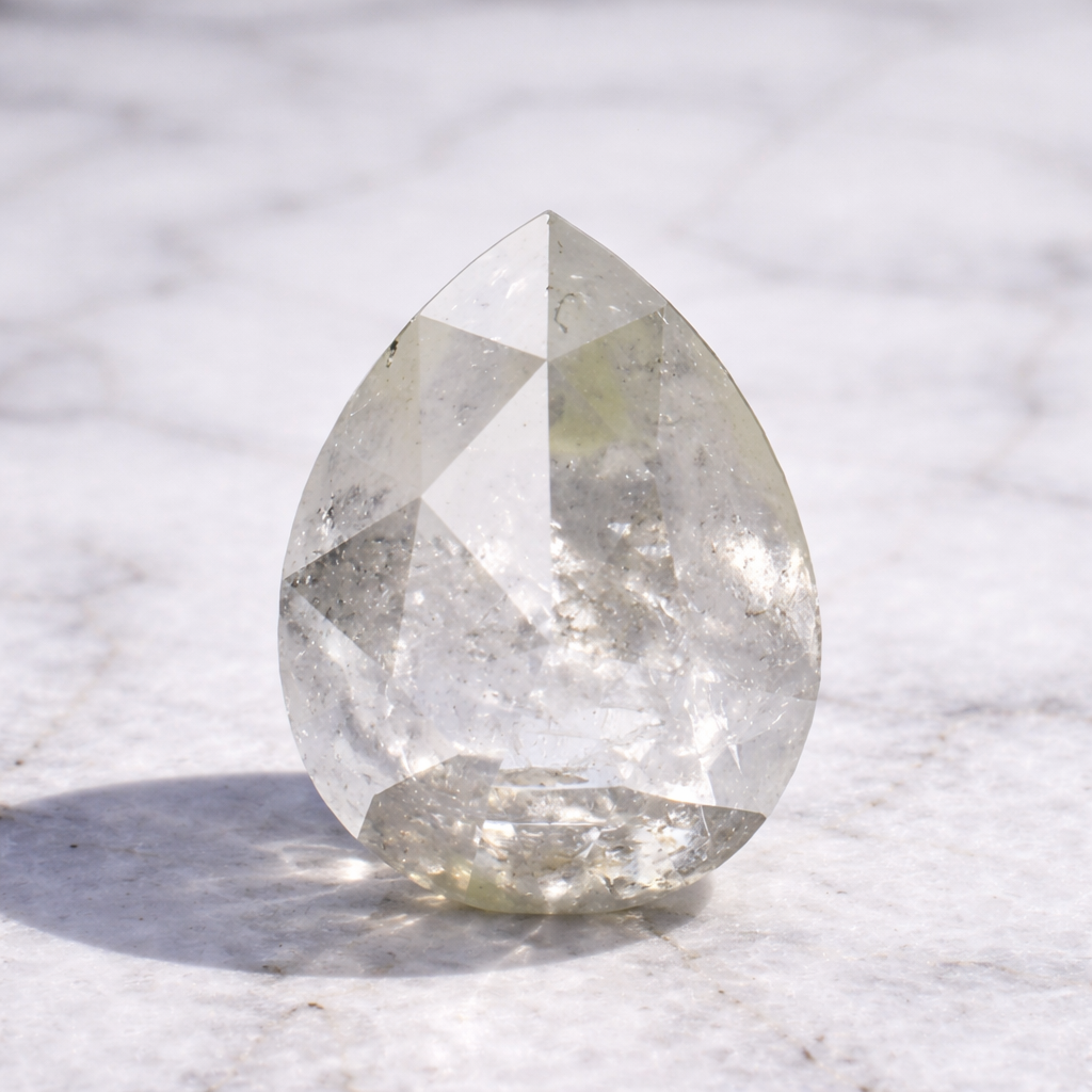 Stone Details: Shape: Pear Size: 7.05mm x 5.00mm Height = 3.02mm Weight: 0.76ct Color: Salt and pepper SKU: Pear0420 Cutting: