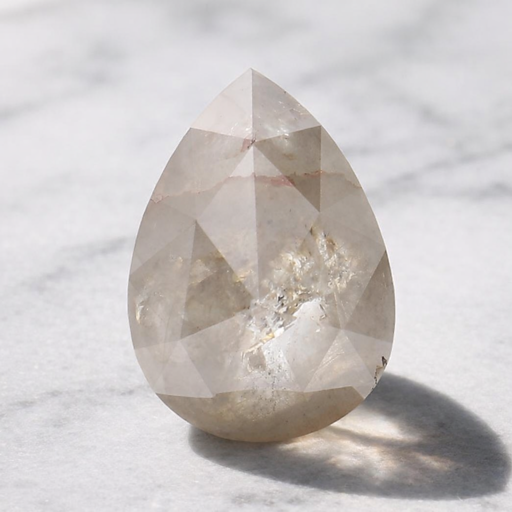 Stone Details: Shape: Pear Size: 7.21 x 5.63 mm Height = 3.23mm Weight: 1.04ct Color: Natural Salt and pepper SKU:
