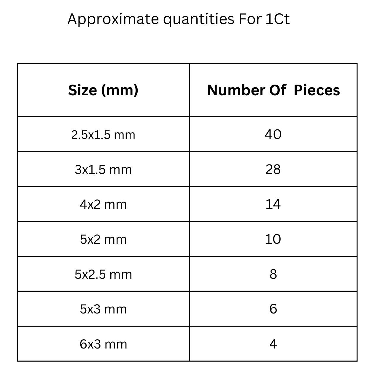 - Size: 2x1 mm, 2.5x1.5mm, 3x1.5 mm, 4x2 mm,5x2mm, 5x2.5 mm, 5x3mm, 6x3mm