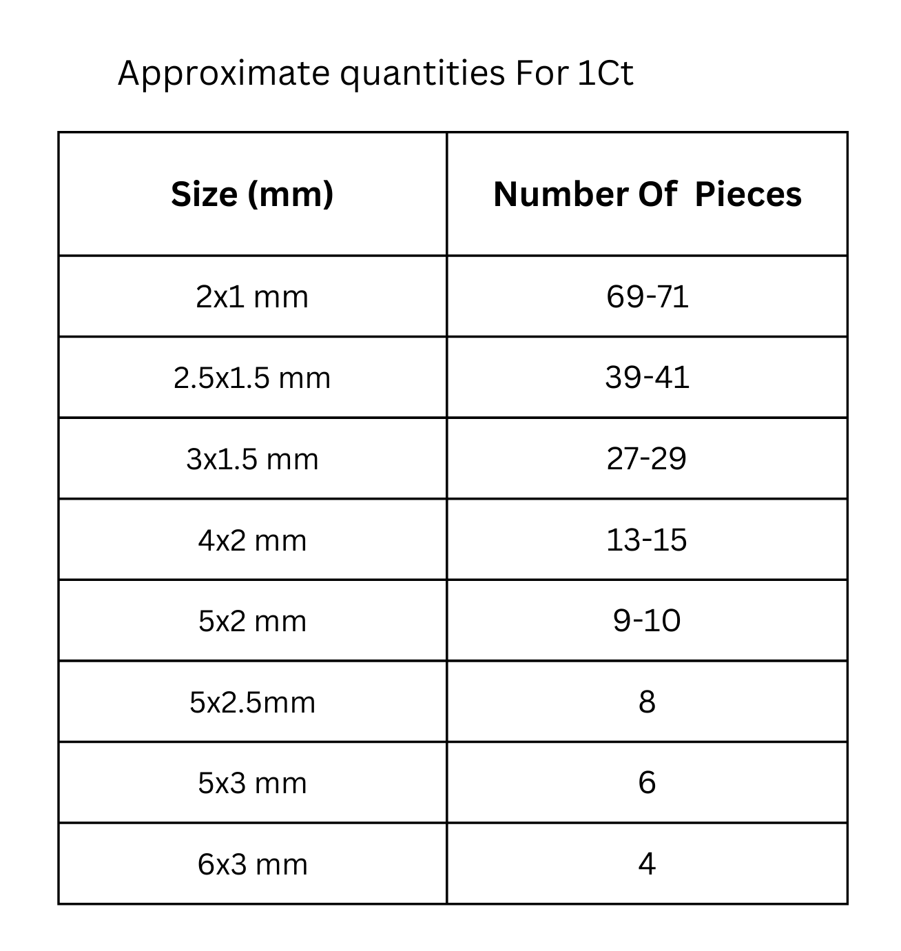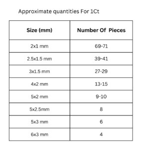 - Sizes: 2x1 mm, 2.5x1.5mm, 3x1.5 mm, 4x2 mm,5x2mm, 5x2.5 mm, 5x3mm, 6x3mm