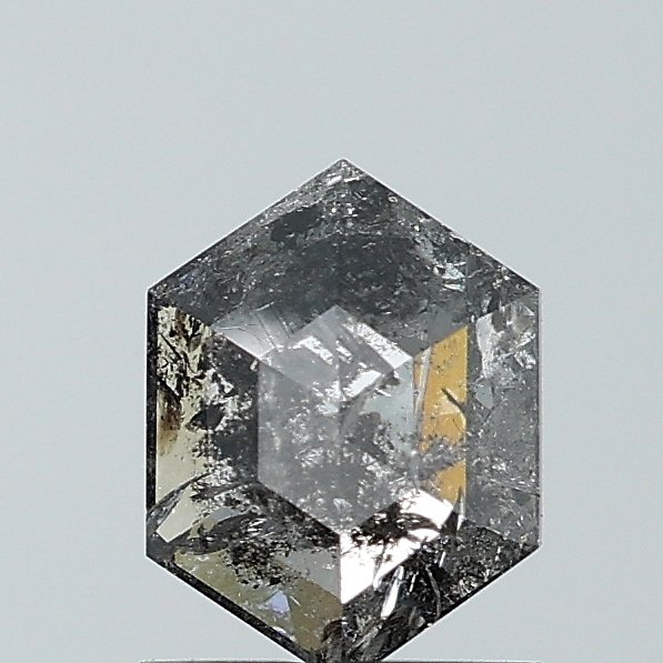 Stone Details: Shape: Hexagon Size: 7.01mm x 5.07mm Height = 3.23mm Weight : 0.95ct Color: Salt and pepper SKU: Hex0289