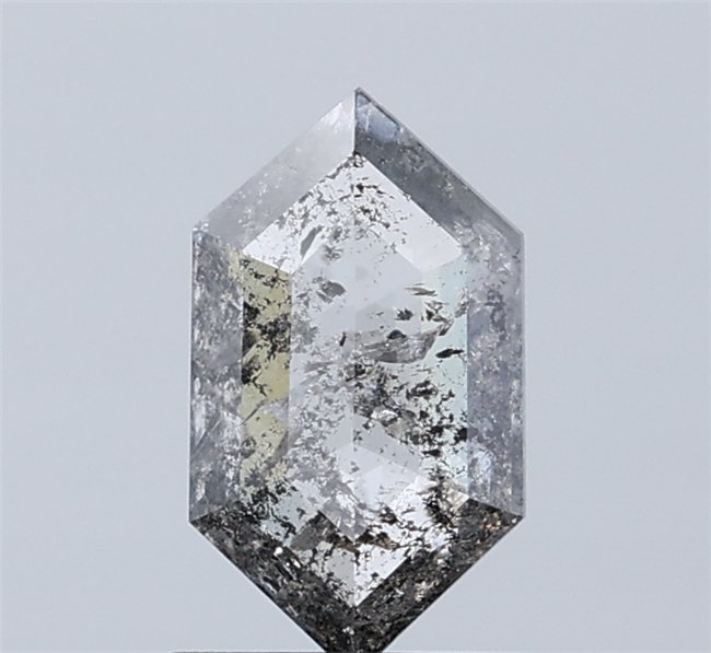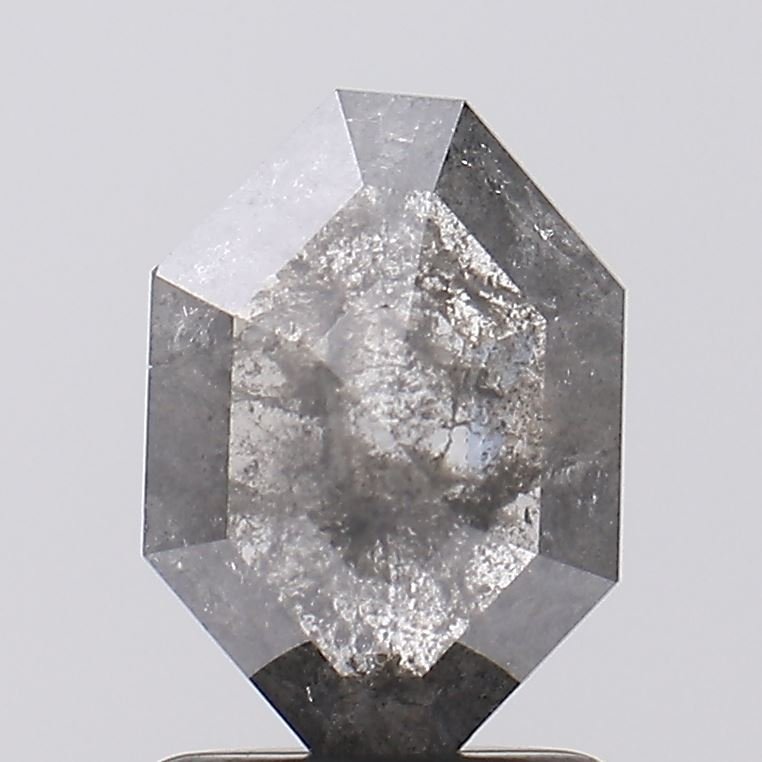 Stone Details: Shape: Hexagon Size: 8.61mm x 5.19mm Height = 3.00mm Weight : 1.09ct Color: Salt and pepper SKU: Hex0287
