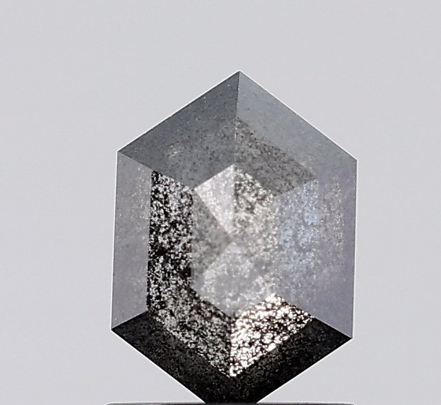 Stone Details: Shape: Hexagon Size: 8.49mm x 5.99mm Height = 2.56mm Weight : 1.09ct Color: Salt and pepper SKU: Hex0276